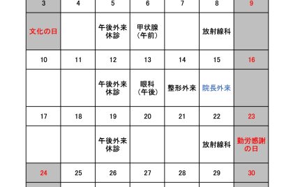 11月専門外来カレンダー